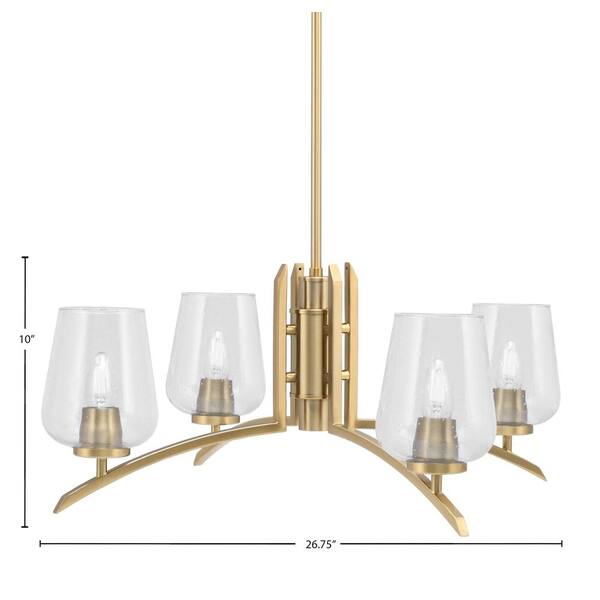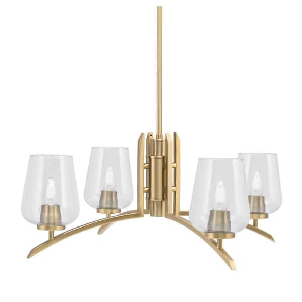 Siena 26.75 in. 4-Light New Age Brass Chandelier with 5 in. Clear Bubble Glass Shade, No Bulbs Included