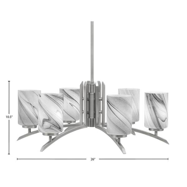 Siena 26 in. 6 Light Graphite Chandelier with Onyx Swirl Glass Shades