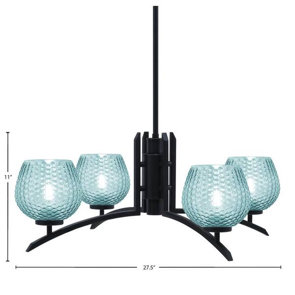 Siena 27.5 in. 4 Light Matte Black Chandelier with Turquoise Textured Glass Shades