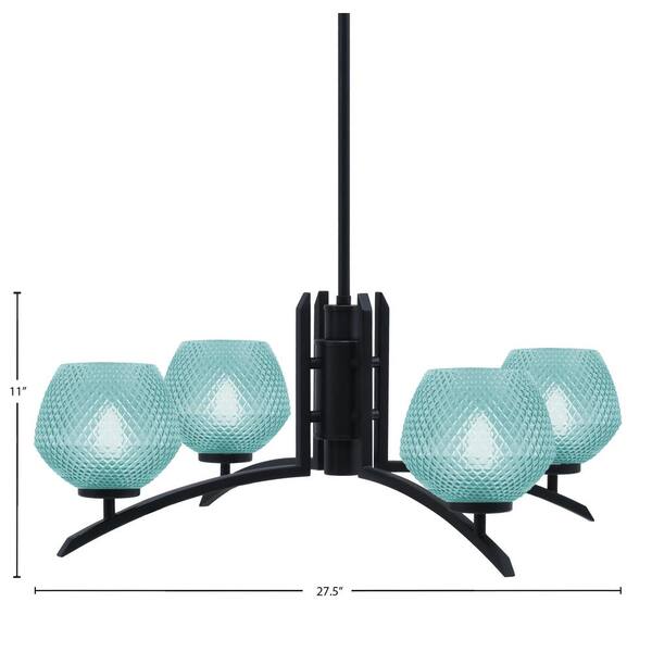 Siena 27.5 in. 4 Light Matte Black Chandelier with Turquoise Textured Glass Shades