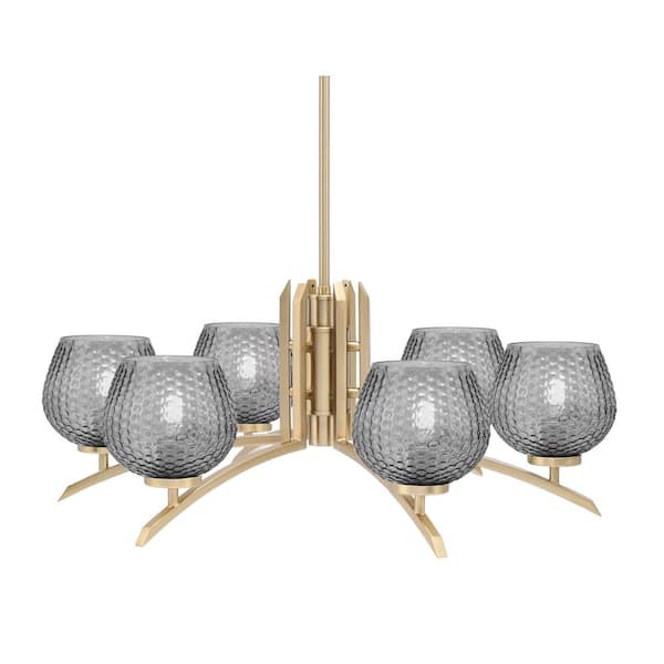 Siena 27.5 in. 6-Light New Age Brass Chandelier with 6 in. Smoke Textured Glass Shades, no bulbs included