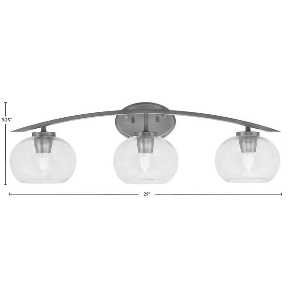Siena 29 in. 3-Light Vanity Light Graphite with Clear Bubble Glass Shades
