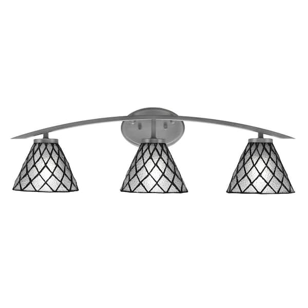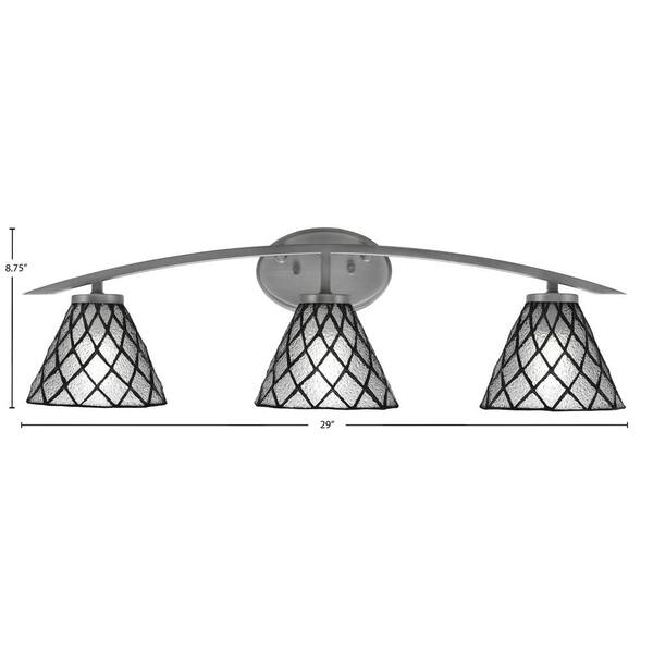 Siena 29 in. 3-Light Vanity Light Graphite with Diamond Ice Art Glass Shades