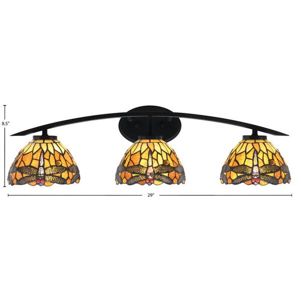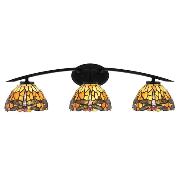 Siena 29 in. 3-Light Vanity Light Matte Black with Amber Dragonfly Art Glass Shades