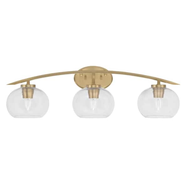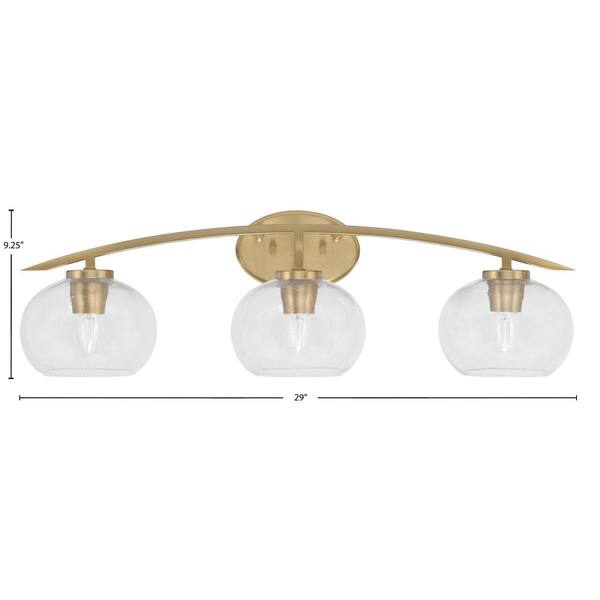 Siena 29 in. 3-Light Vanity Light New Age Brass with Clear Bubble Glass Shades