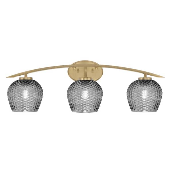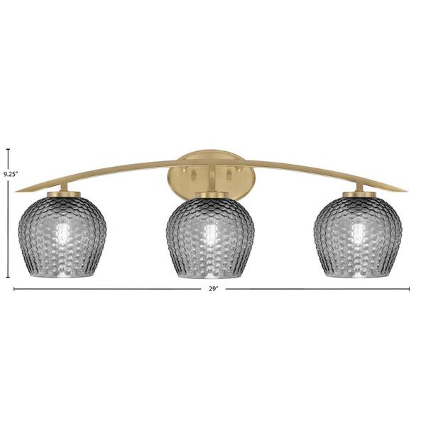 Siena 29 in. 3-Light Vanity Light New Age Brass with Smoke Textured Glass Shades