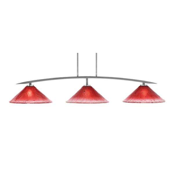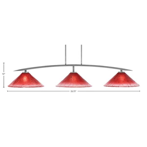 Siena 3-Light Graphite Billiard-Light with Raspberry Crystal Glass