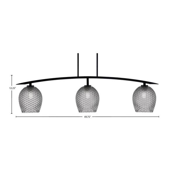 Siena 3-Light Matte Black Billiard Light with 7.5 in. Smoke Textured Glass Shades No Bulbs Included