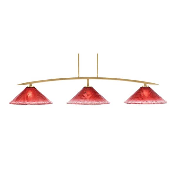 Siena 3-Light New Age Brass Billiard-Light with Raspberry Crystal Glass