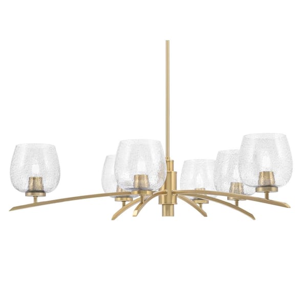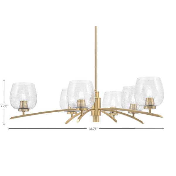 Siena 31.75 in. 6 Light New Age Brass Chandelier with Smoke Bubble Glass Shades