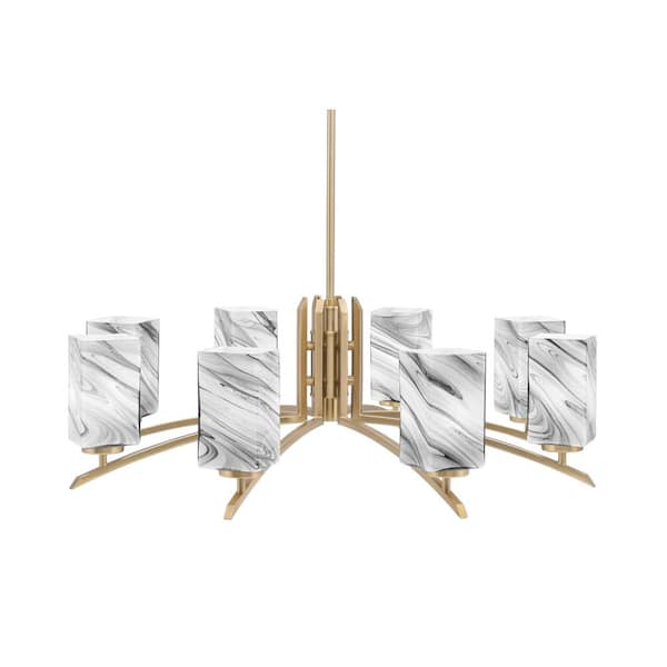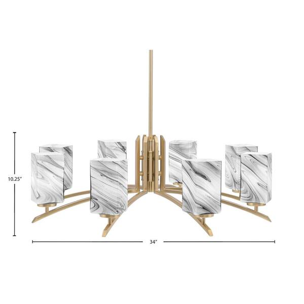Siena 34 in. 8-Light New Age Brass Chandelier with 3.5 in. Onyx Swirl Glass Shades, no bulbs included