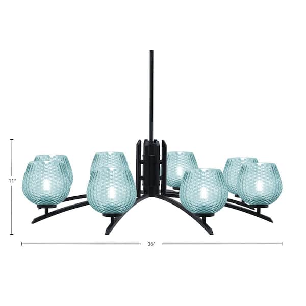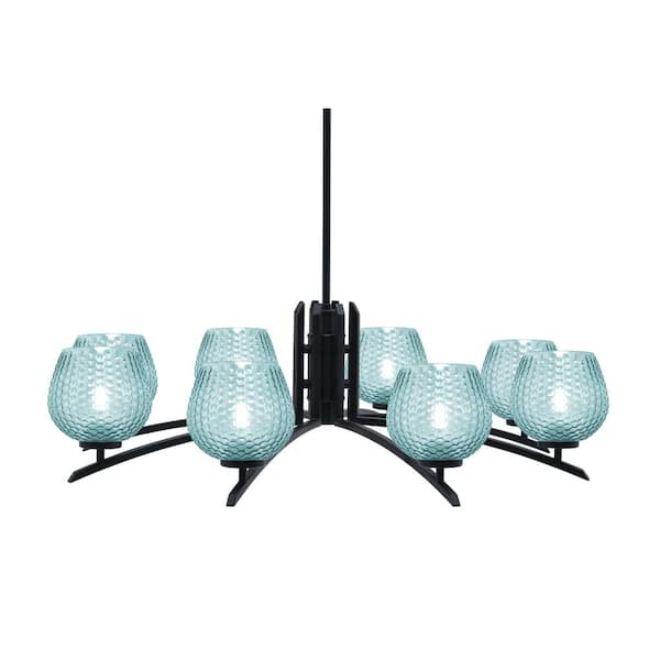 Siena 36 in. 8 Light Matte Black Chandelier with Turquoise Glass Shades