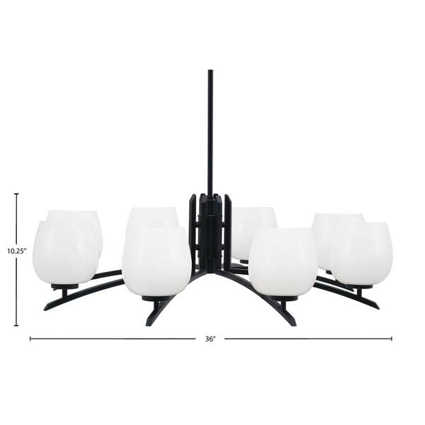 Siena 36 in. 8 Light Matte Black Chandelier with White Marble Glass Shades