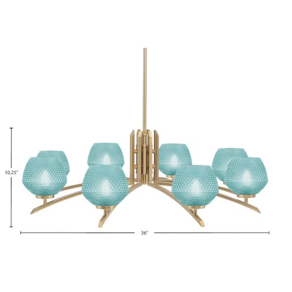 Siena 36 in. 8-Light New Age Brass Chandelier with 6 in. Turquoise Textured Glass Shades, no bulbs included