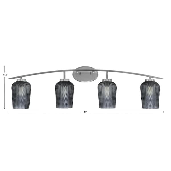 Siena 40 in. 4-Light Graphite Vanity-Light Graphite with 5 in. Smoke Textured Glass Shades No Bulbs Included