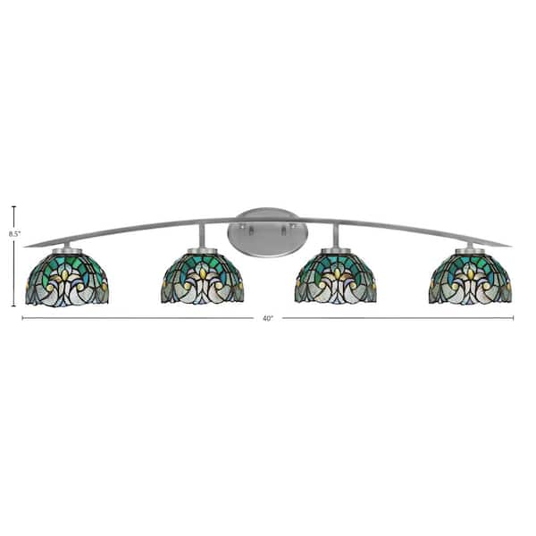Siena 40 in. 4-Light Graphite Vanity-Light Graphite with 7 in. Turquoise Cypress Art Glass Shades No Bulbs Included
