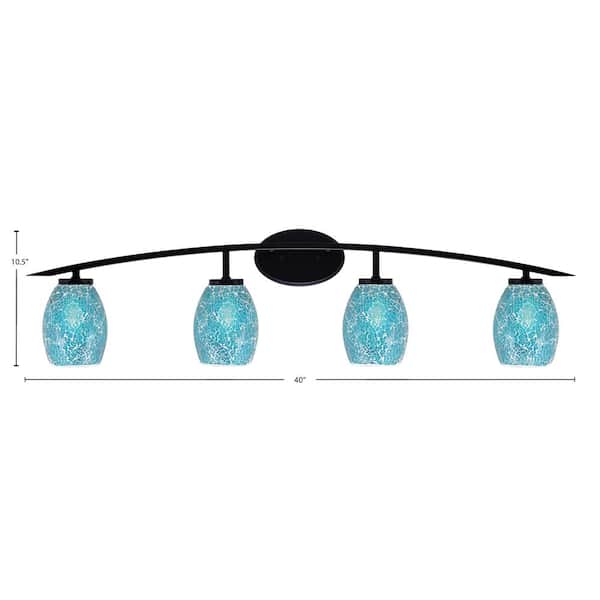 Siena 40 in. 4-Light Matte Black Vanity-Light with 5 in. Turquoise Fusion Glass Shades No Bulbs Included