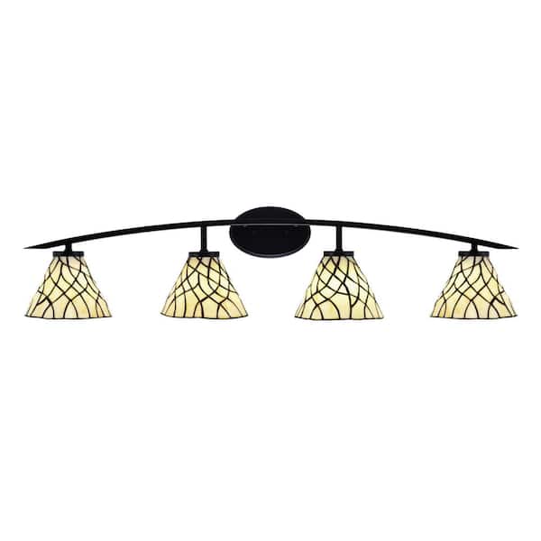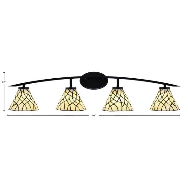 Siena 40 in. 4-Light Matte Black Vanity-Light with 7 in. Sandhill Art Glass Shades No Bulbs Included