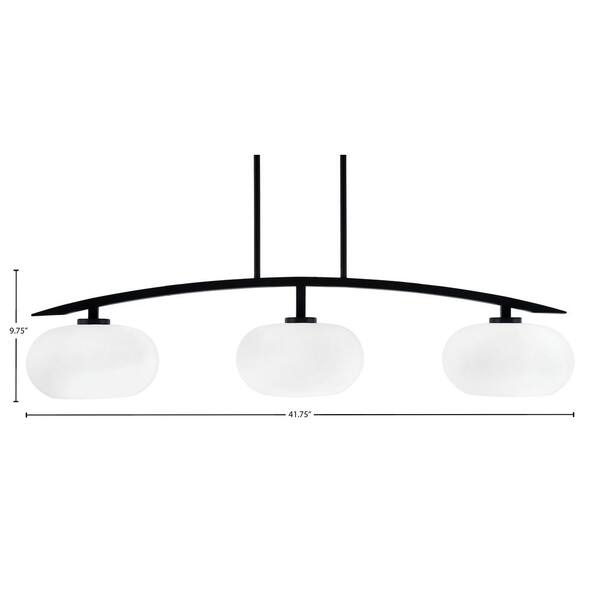 Siena 41.75 in. 3-Light Matte Black Chandelier with 10 in. White Muslin Glass Shades No Bulbs Included