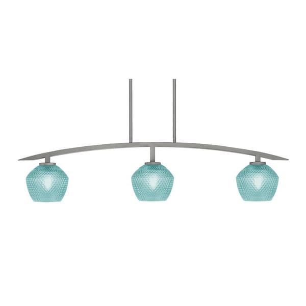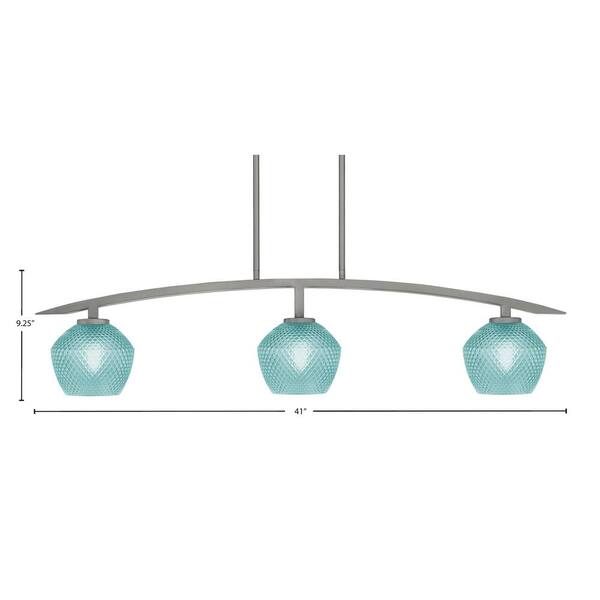 Siena 41 in. 3-Light Graphite Chandelier with 6 in. Turquoise Textured Glass Shades, no bulbs included