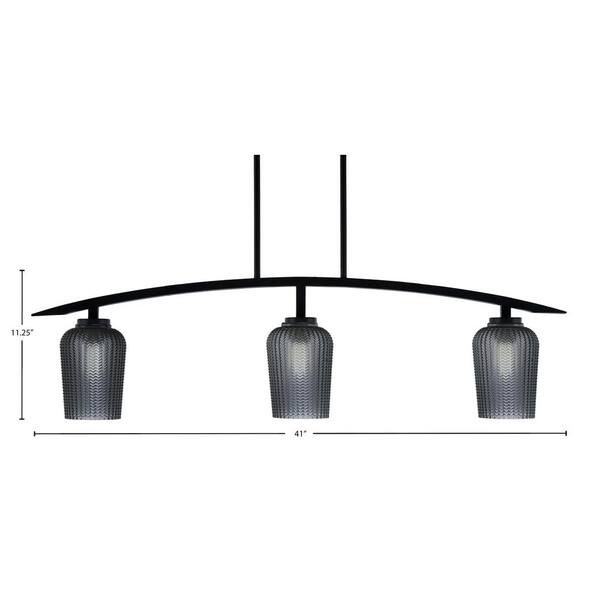 Siena 41 in. 3-Light Matte Black Chandelier with 5 in. Smoke Textured Glass Shades No Bulbs Included
