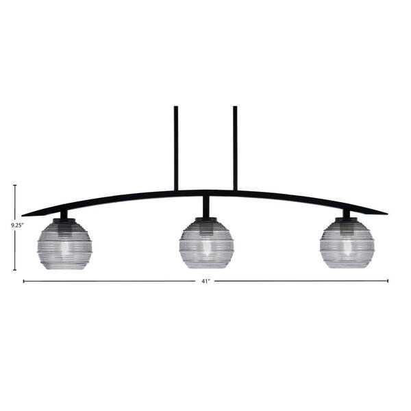 Siena 41 in. 3-Light Matte Black Chandelier with 6 in. Smoke Ribbed Glass Shades No Bulbs Included