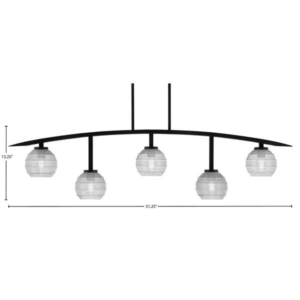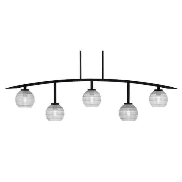 Siena 5-Light Matte Black Billiard-Light with Clear Ribbed Glass Shades