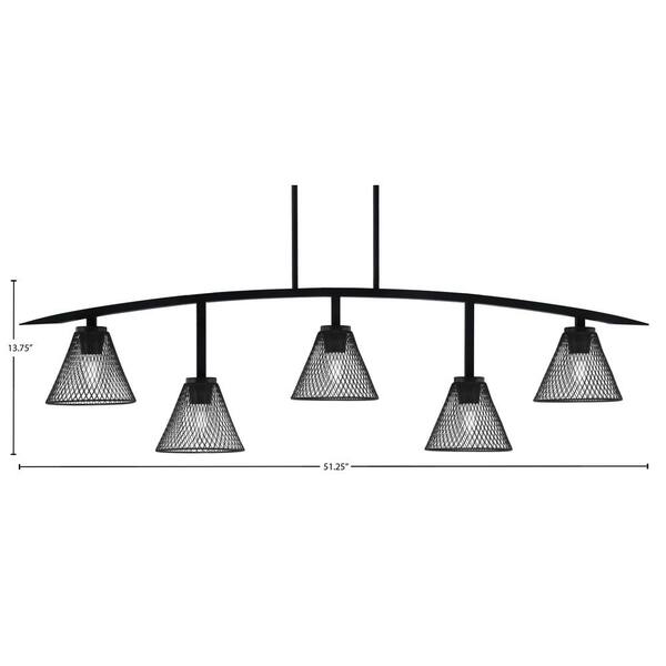 Siena 5-Light Matte Black Billiard-Light with Matte Black Metal Shades