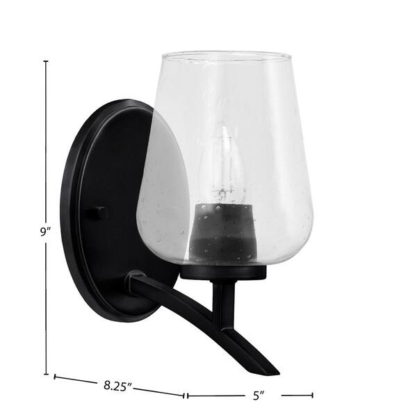 Siena 5 in. 1-Light Matte Black Sconce with 5 in. Clear Bubble Glass Shade No Bulb Included