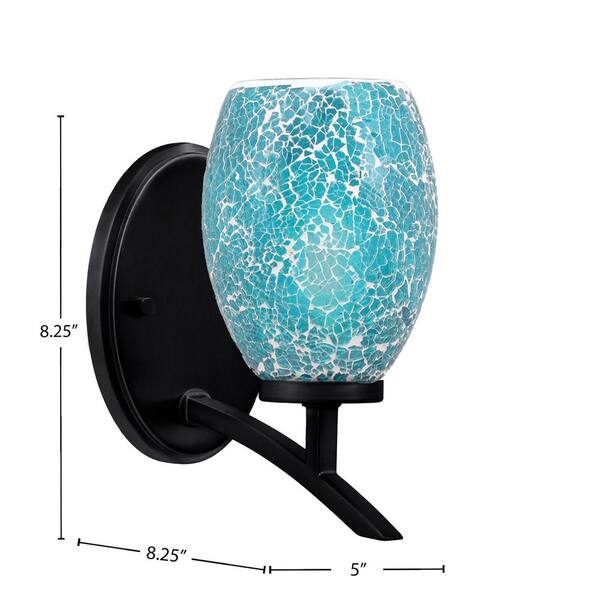 Siena 5 in. 1-Light Matte Black Sconce with 5 in. Turquoise Fusion Glass Shade No Bulb Included