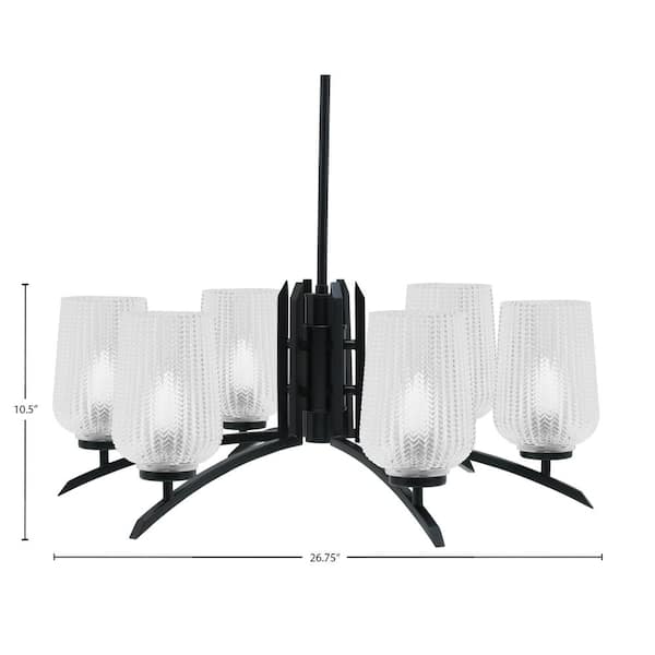 Siena 6-Light Matte Black Chandelier, Round Chandelier with Clear Glass Shades, No bulb Included