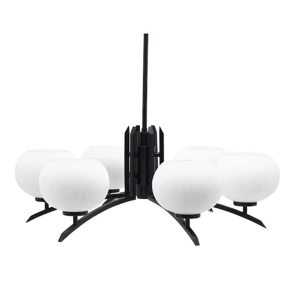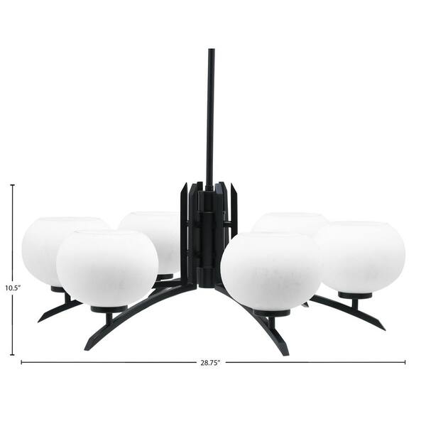 Siena 6-Light Matte Black Chandelier, Round Chandelier with White Muslin GlassShades, No bulb Included