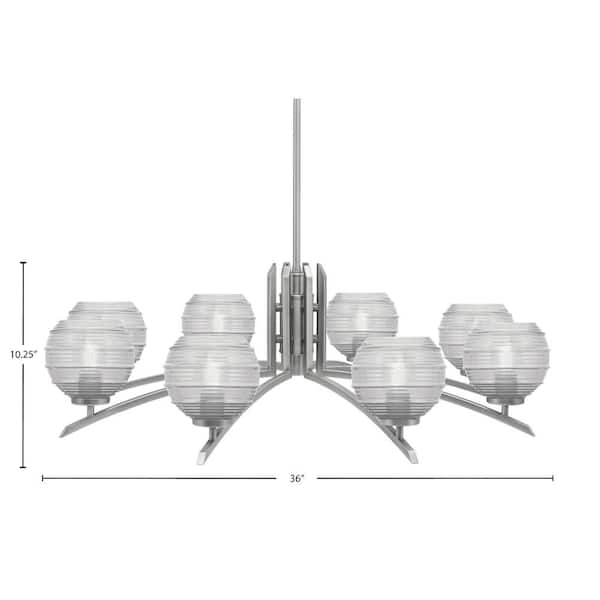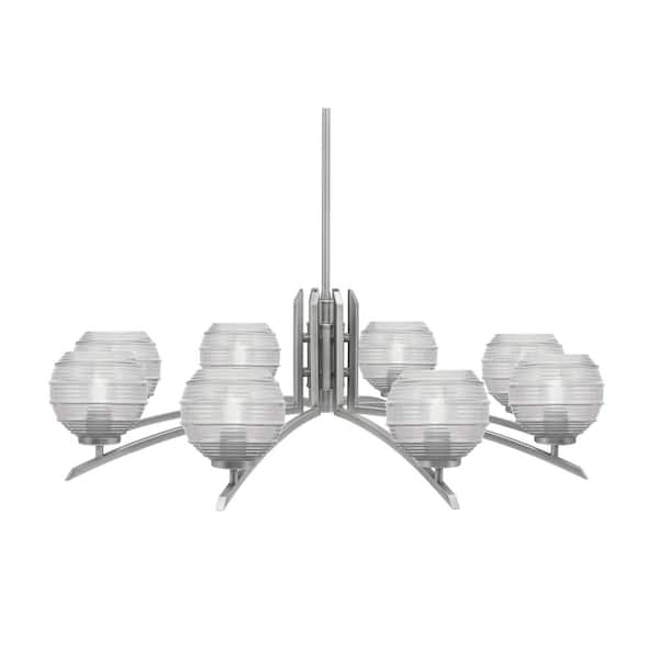 Siena 8-Light Graphite Chandelier, Round Chandelier with Clear Ribbed Glass Shades, No bulb Included