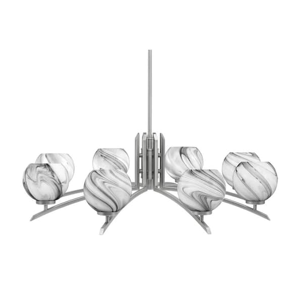 Siena 8-Light Graphite Chandelier, Round Chandelier with Onyx Swirl Glass Shades, No bulb Included
