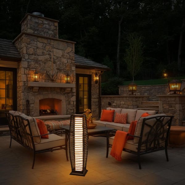 Sierra Luxe 27 in. 60 lumens Black Solar LED Outdoor Floor Lamp with Rattan Texture and Shatter-Proof Lens, 1-Pack