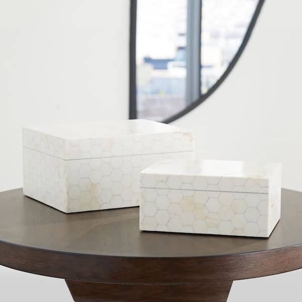 Aldenburg White 9 in. x 4.63 in. Resin Decorative Box Set of 2
