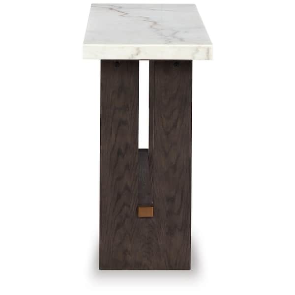 Burkhaus 52 in. White/Dark Brown Rectangle Marble Console Table