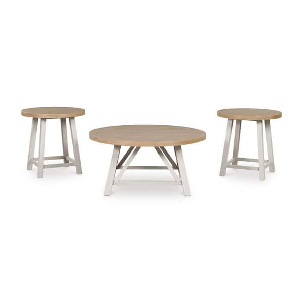 Fawndell 40 in. Brown and White Round Wood Coffee Table with 2 End Tables
