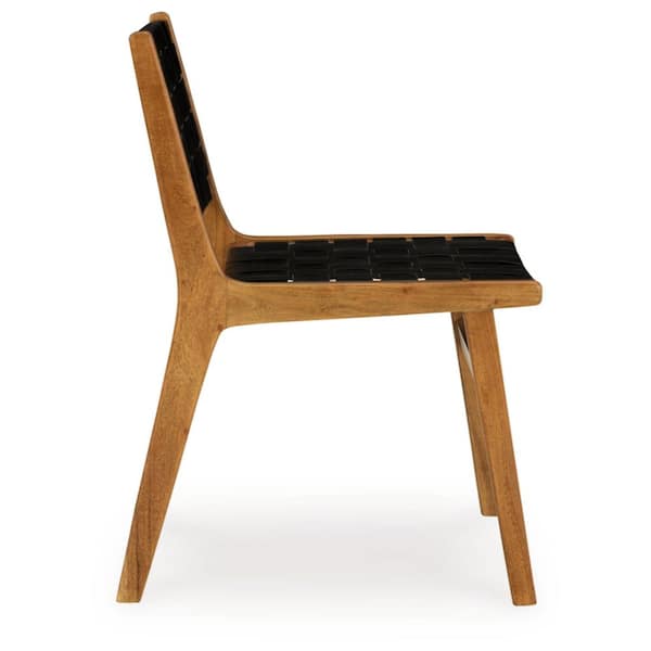Fortmaine Brown/Black Leather with Solid Wood Frame Side Chair Set of 2