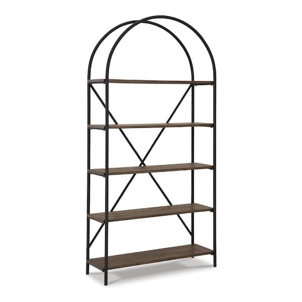 Galtbury 72 in. Tall Black/Brown Metal frame 4-Shelf Standard Bookcase with Exterior Shelves