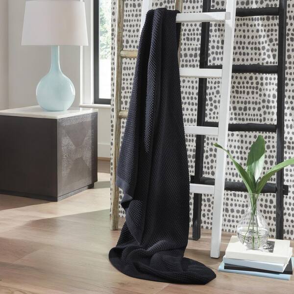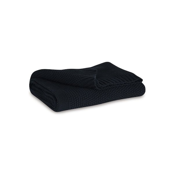 Gayelery Black Textured Cotton Throw Blanket (Set of 3)