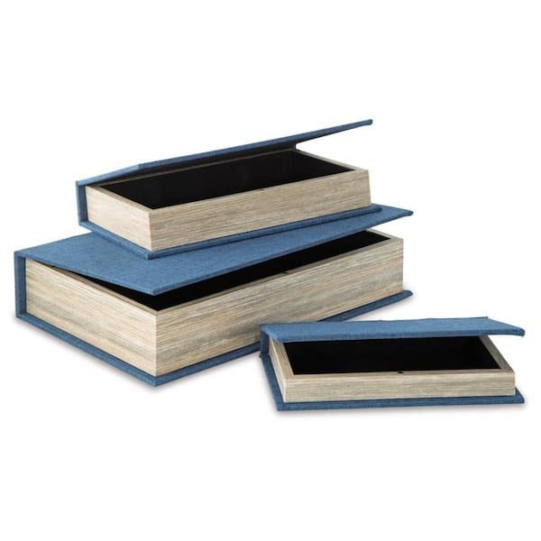 Jolina Blue 13 in. x 2.75 in. Linen Decorative Box Set of 3