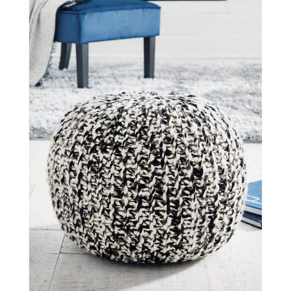 Latricia Black/White Polyester 18 in. W x 18 in. D x 17 in. H Pouf