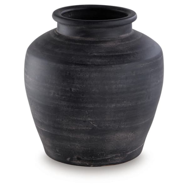 Meadie 12 in. H Black Terra Cotta Pot Decorative Vase