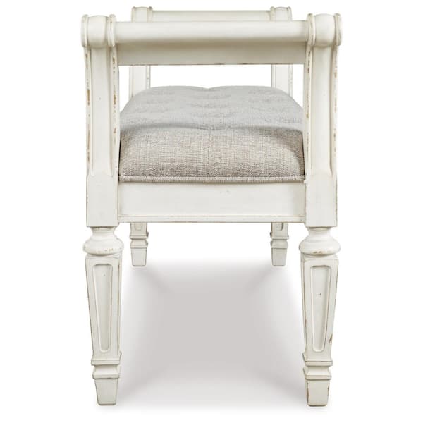 Realyn Traditional Antique White Polyester 46 in. 4-Legs Accent Bench without Back Dining Table Seat-2