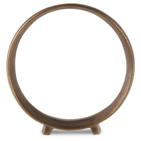 • Round metal sculpture with antique brass finish