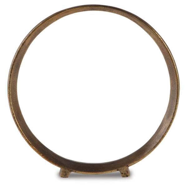 • Set of 2 round sculptures in antiqued brass-tone finish