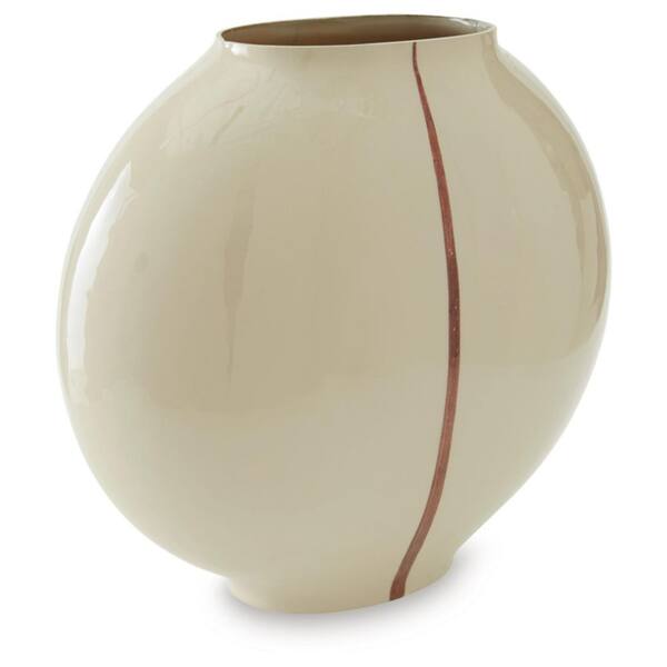 Sheabourne 13 in. H Beige Glass Round Decorative Vase
