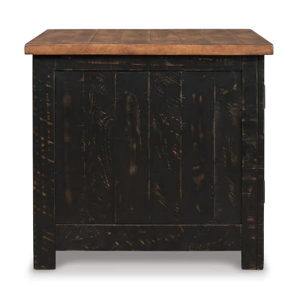 Valebeck 24 in. Black/Brown Rectangle Wood End Table with Cabinet and Shelf