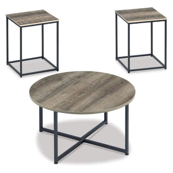 Wadeworth 31.5 in. Gray/Black Round MDF Coffee Table with 2-Pieces